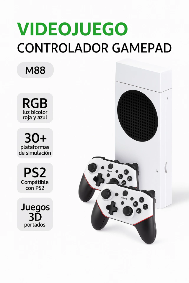 La Game Stick M88 es una consola retro compacta tipo “plug & play” que se conecta directamente al puerto HDMI del televisor y ofrece miles de juegos clásicos listos para jugar. Su sistema de emulación avanzada permite disfrutar títulos de consolas como PS2 PS1, PSP, Dreamcast, N64, Sega, Atari entre otras, con una excelente calidad gráfica