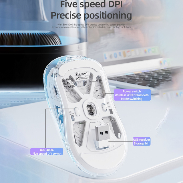 Mouse Gamer Freewolf A2 Inalámbrico 2.4GHz / BT – RGB 4000 DPI